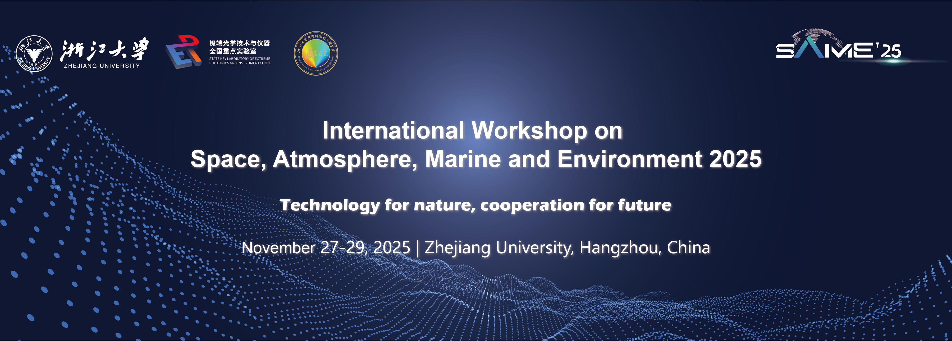 We are pleased to announce that the International Workshop on Space, Atmosphere, Marine and Environment (SAME'25) wil be held in Zhejiang University (ZJU), Hangzhou, China, 2025.